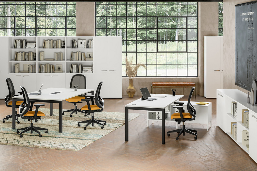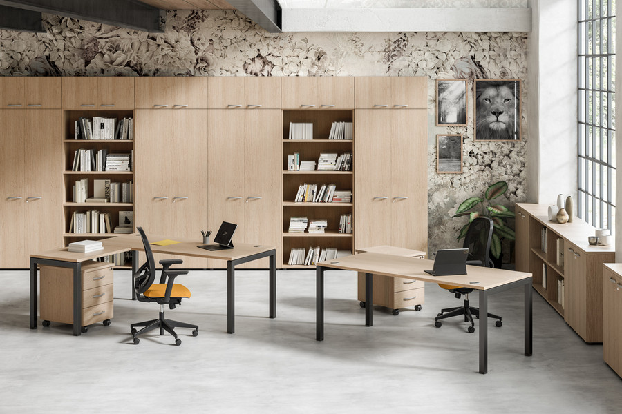 In alternativa la linea ufficio può essere abbinata agli Armadi componibili 2898 di larghezza 90 cm e in tre altezze: 85, 123 e 200 cm. Profondità 46 cm. Struttura sp. 18 mm e ripiani interni di 25 mm.