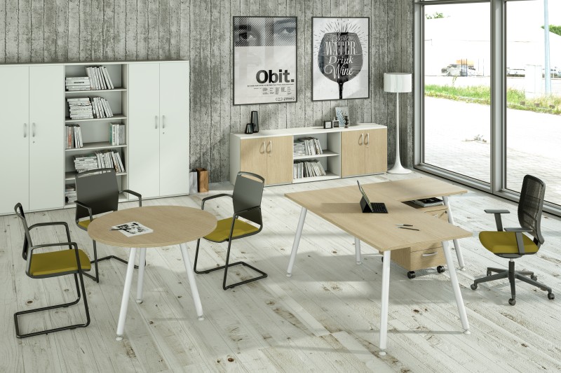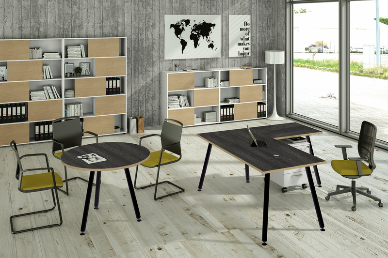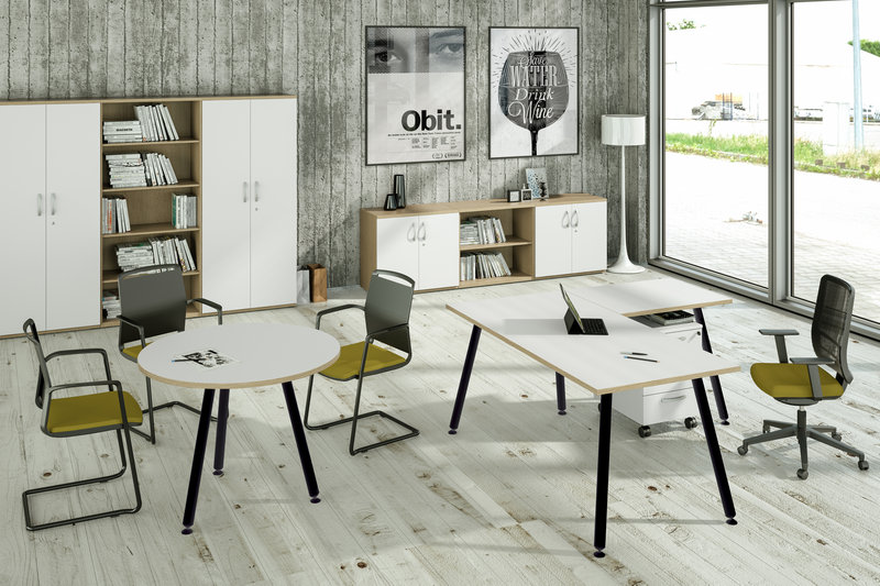 Queste scrivanie possono andare con i mobili e cassettiere della Flex, Presto e con le librerie ad ante scorrevoli 17060 e 17065